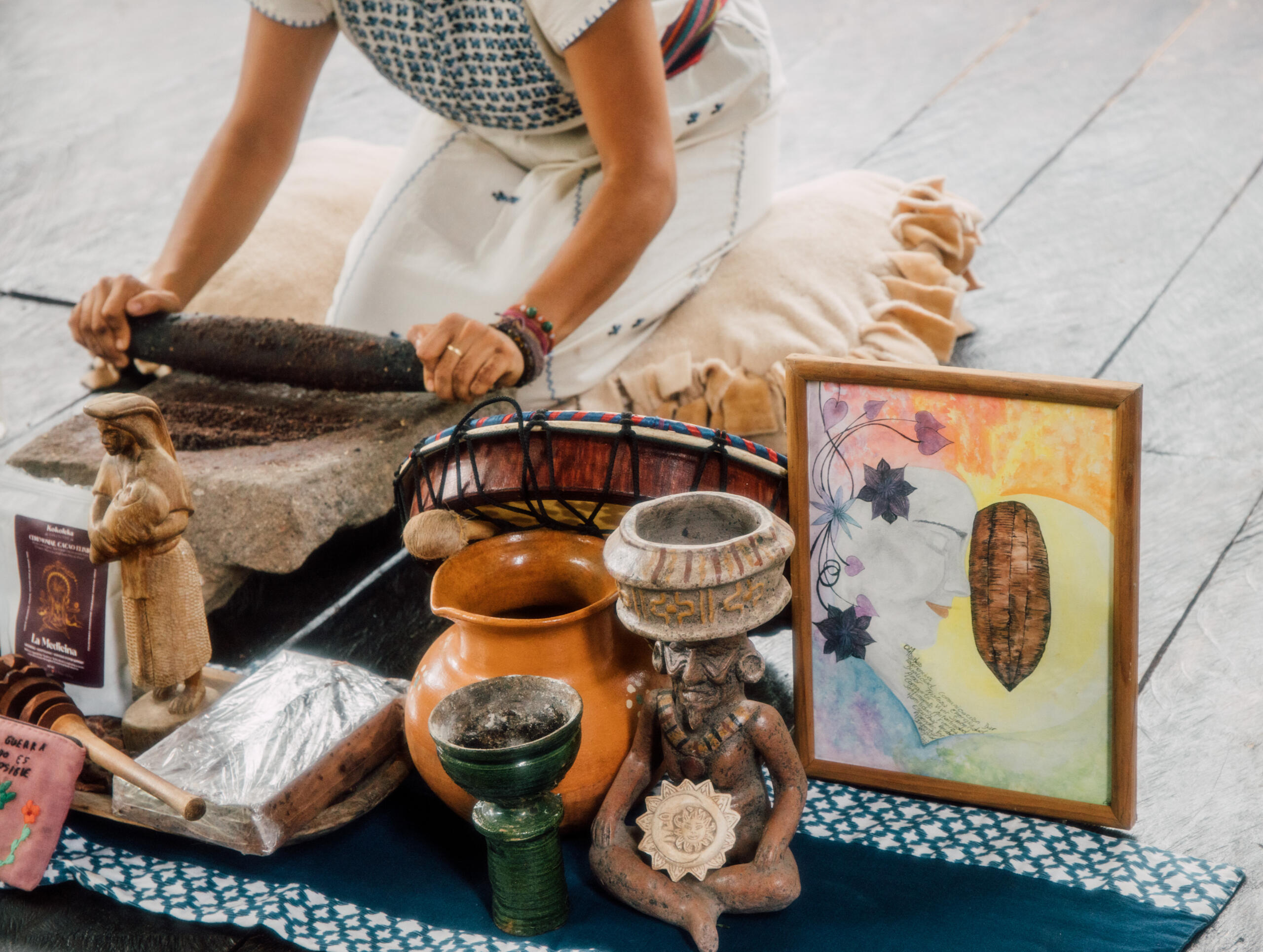 Hoy en día, el cacao ceremonial se refiere a la pasta pura de cacao de alta calidad y mínimamente procesada, que se prepara con intención para apoyar la apertura del corazón, la claridad y la conexión.